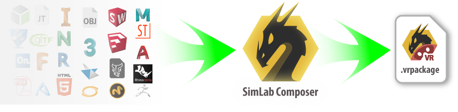 SimLab Composer umí číst aplikace SketchUp, Spirit, Revit, Rhino, SolidWorks, Solid Edge, Inventor, AutoCAD, ArCon, Alibre, ZW3D a mnoho dalších 3D aplikací.